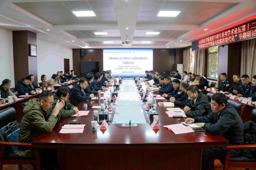 11月27日,由警官学院主办、北京德和衡律师事务所协办的“刑事执行法学理论与实践的现代化”专题研讨会暨山东政法学院建校70周年系列学术论坛第十二期于鼎山楼第二会议室成功举行。中国监狱工作协会副会长李豫黔、山东省监狱管理局二级警务专员李厥瑞、山东省济微监狱监狱长徐勇、山东省高级人民法院法警总队警训室负责人、三级警监孙贯川、山东省司法厅社区矫正工作处副处长崔恒涛、山东省监狱学会秘书长李庆水、济南市第二监狱副监狱长李晓明、山东省第二女子监狱副监狱长乔晶以及山东省监狱、山东省女子监狱,山东省女子第二监狱、山东省高级人民法院法警总队等各单位领导参与会议。山东政法学院党委委员、副院长胡晓清出席会议。警官学院党委书记姜敏、警官学院全体教师参加会议。会议由警官学院院长魏黎明主持。